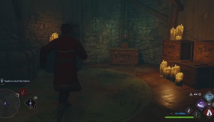 Al descender por la escalera que aparece tras abrir el cofre, te encontrarás en un ambiente sombrío y lleno de misterios. La oscuridad será tu compañera constante, por lo que deberás usar Lumos para iluminar tu camino. Pronto llegarás a una habitación llena de maniquíes, un elemento recurrente en esta misión que garantiza varios sustos. Para avanzar, tendrás que localizar una linterna flotante y usar hechizos como Accio o Wingardium Leviosa para colocarla en un gancho en forma de mano, lo que abrirá la siguiente puerta.